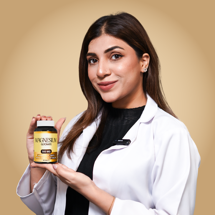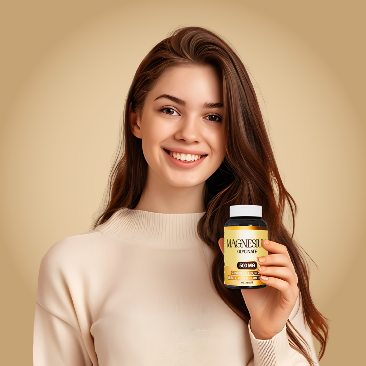 Magnesium Glycinate Promotes Muscles & Nerves functions, reduces stress & anxiety & improves sleep cycle.